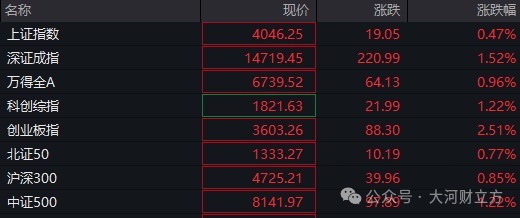【大河财立方消息】4月16日,A股重要股指集体高开,截至11时,上证指数涨0.47%,深证成指涨1.52%,创业板指数涨2.51%,科创综指涨1.22%,全市场超3600个股飘红。