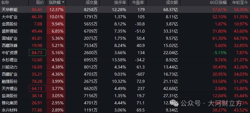 锂矿概念集体爆发。宁德时代的强势业绩表现,带动锂矿指数再度走高。Wind数据显示,截至发稿,锂矿指数涨超4%,金圆股份封涨停,盛新锂能打开涨停板,大中矿业4天2板创历史新高,天华新能涨超12%, 国城矿业 、融捷股份 、西藏珠峰 、盐湖股份、江特电机跟涨。